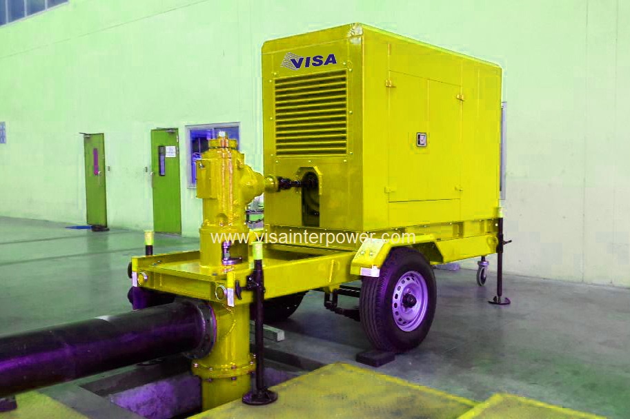 เป็นเครื่องสูบน้ำชนิดเพลาตั้งขับด้วยเครื่องยนต์ดีเซลกำลังตั้งแต่ 70แรงม้าขึ้นไปซึ่งเครื่องต้นกำลังติดตั้งบนเทรลเลอร์ลากจูง 2 ล้อ หรือ 4ล้อพร้อมตู้ครอบเก็บเสียงด้วยวัสดุเก็บเสียงใยแก้วการต่อประกอบโดยยอยหรือระบบไฮดรอลิคขนาดของท่อทางดูดมีขนาด 6 นิ้ว,8นิ้ว,10นิ้ว,12นิ้ว,14นิ้วปริมาตรน้ำที่สูบได้ไม่น้อยกว่า 4200 ลิตรต่อนาทีถึง 24,000ลิตรต่อนาที ข้อมูลทั่วไป ยี่ห้อ : VISA รุ่น: VT ขนาดท่อทางสูบ: 150-350 mm. ขนาดท่อทางส่ง :150-350 mm. เครื่องต้นกำลัง :เครื่องยนต์ดีเซล ขับด้วยระบบ : ยอยหรือระบบไฮดรอลิค ระบบป้องกัน: ตู้ครอบเก็บเสียง(ตามความต้องการของลูกค้า) ระบบควบคุมการทำงาน : ระบบคอมพิวเตอร์หรือแอพพลิเคชั่นมือถือ (ตามความต้องการของลูกค้า)